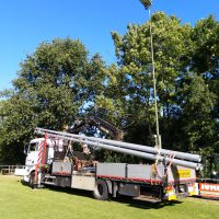 ‘De oude veldverlichting hebben we ruim twintig jaar geleden van VHK overgenomen. Dat waren enorme lichtmasten, waarvoor we speciale kranen moesten huren om ze hier overeind te krijgen. De lampen moesten ruim van tevoren aan en moesten afkoelen. Met de ledverlichting hoeft dat allemaal niet meer. Ze kunnen zo aan en uit. Alle trainers zijn geautoriseerd om die verlichting te bedienen. Dat kan heel gemakkelijk via een app.’
